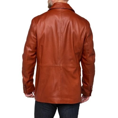 Modern Notch Lapel Brown Safari Leather Jacket For Men