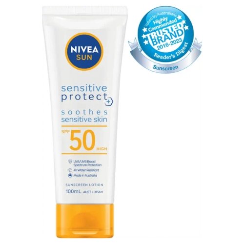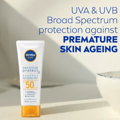 NIVEA SUN Sensitive Protect Sunscreen Lotion SPF50 provides you with broad spectrum protection and moisturising care whilst being suitable for sensitive skin. Made with quality ingredients your sensitive skin is protected and cared for. Enjoy the sun with quality care using NIVEA!